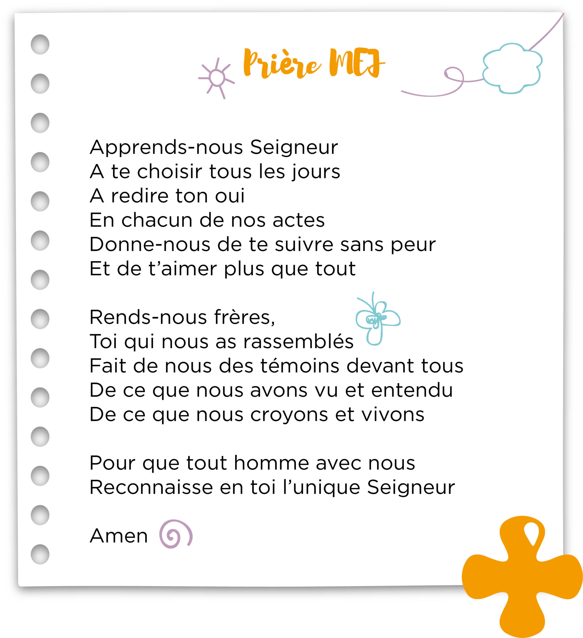 Le MEJ désire que les jeunes entrent dans cette communion avec Dieu et fassent de leur vie, une Eucharistie, à l’image de Jésus. Reconnaître le don du Christ à chaque célébration de l’Eucharistie nous fait entrer dans Sa vie : cette joie fait naître en chacun le désir d’offrir sa vie dans le quotidien et faire de sa vie une Eucharistie. L’Eucharistie vécue et célébrée est une manière de vivre.